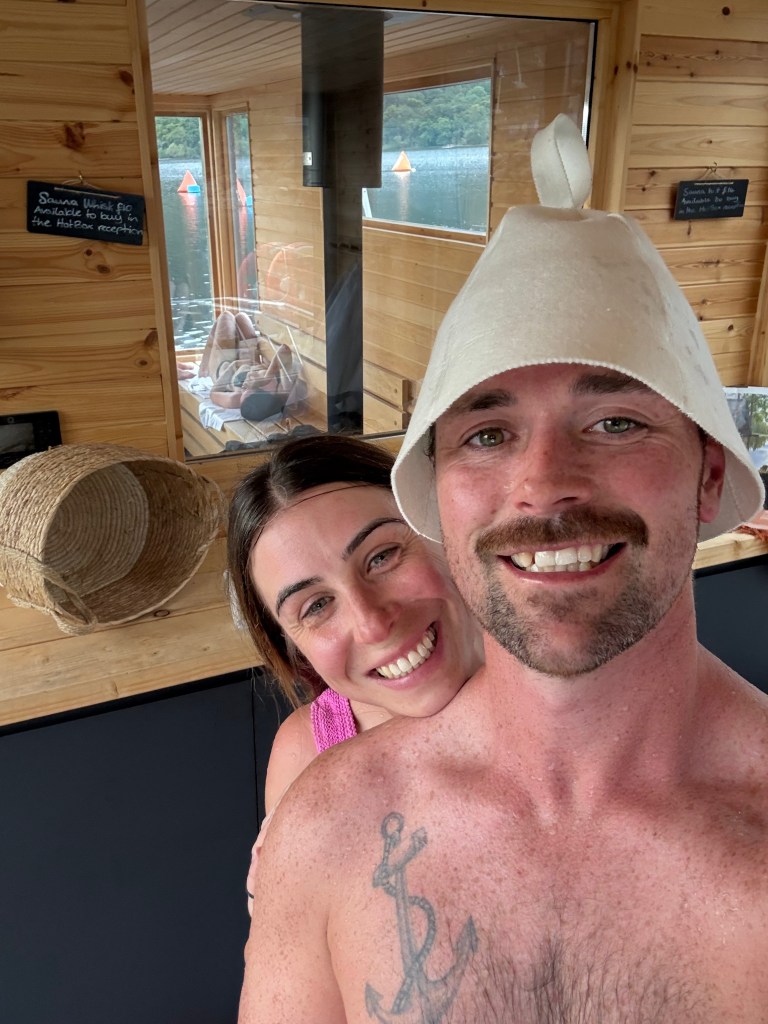 I’ve been obsessed with cabins and small builds since I was a teenager, and as my partner builds cabins and saunas for a living, we took advantage of the opportunity to check out the craftsmanship of the box sauna, and each other in swim wear.