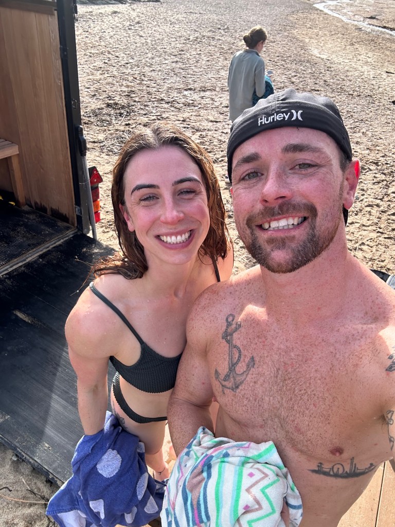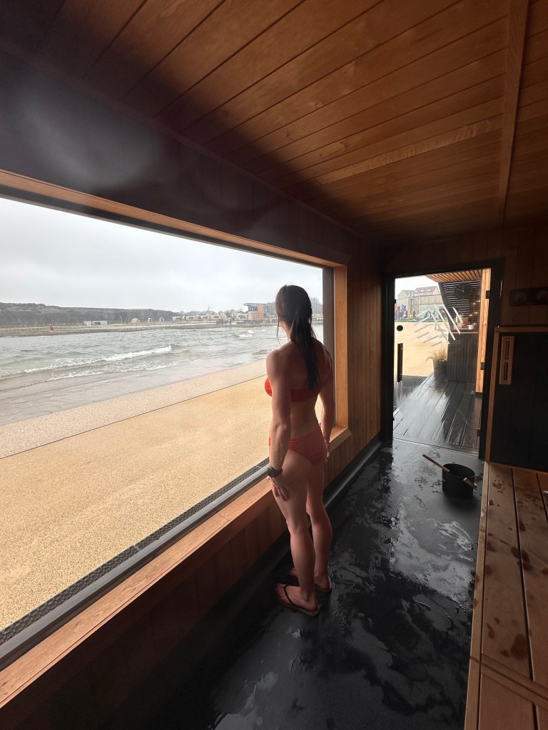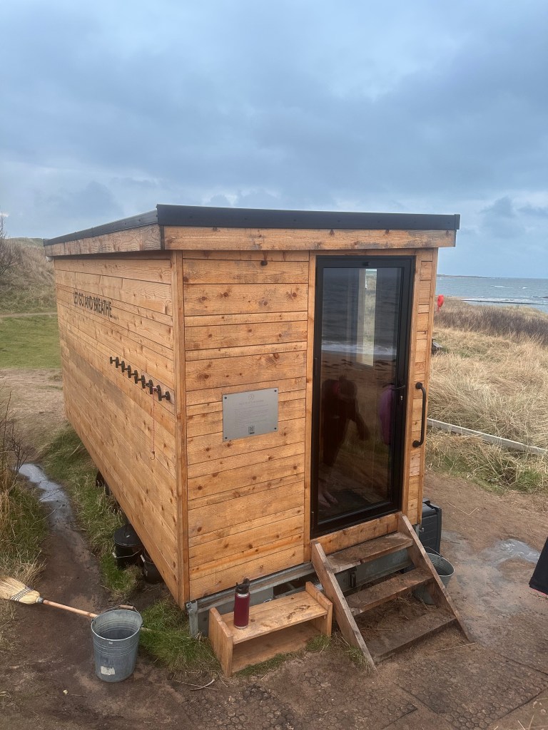 I’d been to a sauna tent on my local beach in Tynemouth a few times with a friend, but there was something more romantic about the black wooden structure of Saunas by the Sea that stood out against the sand.