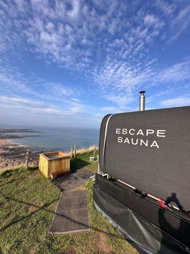 Escape Sauna sits on a cliff above North Bewick with amazing coastal views. A mooch around North Berwick and then lunch at Drift café beforehand made for a memorable day out. The food at Drift is fantastic and the floor to ceiling windows of the converted shipping container host dramatic views of the North Sea.